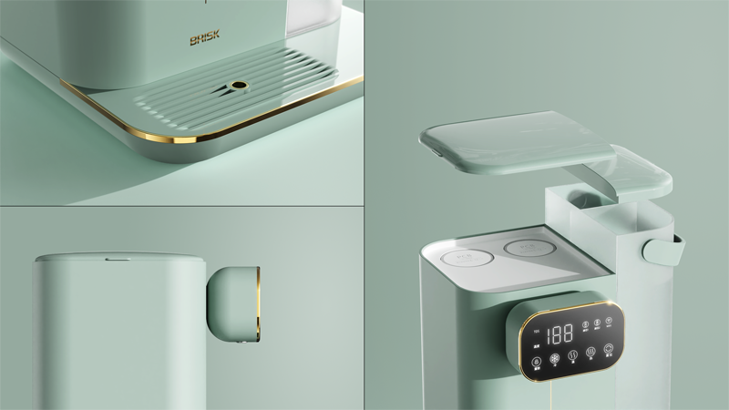 該設計優(yōu)化傳統(tǒng)臺式機結構布局,將常見的“一字型”縱向布局改為更加緊湊的“井字形”布局,縮減縱深空間同時將水箱置于側面,方便換水。高顏值小尺寸機身更符合現(xiàn)代年輕用戶群體家居環(huán)境。