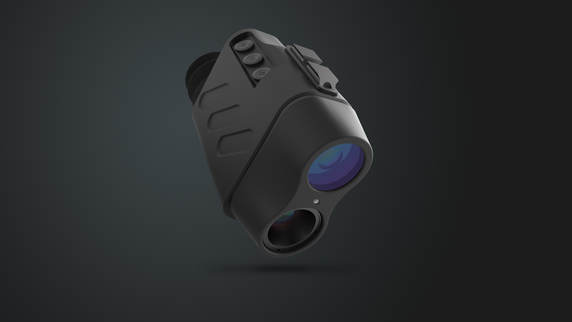 警用頭盔夜視儀,通過佩戴在頭盔上滿足夜晚特殊的使用環(huán)境。流線型造型與按鍵處更貼合人機使用環(huán)境。按鍵UI凸起設(shè)計,在黑夜中觸摸即可找到按鍵。